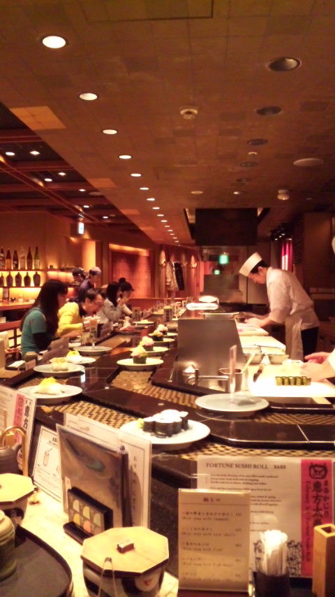 こんばんは。今日は日曜日だったのですが、お昼からちょっと打ち合わせがあったので、いつも通りに六本木に行っていました。その打ち合わせも3時には終わったので、どこかで食事でもして帰ろうかと思い、一人でも気軽に行けるお店を探していると、年末の特番で、武田修宏が六本木ヒルズの回転寿司が超おいしいと何度も言っていたのを思い出し、今日はその回転寿司店『ぴんとこな』に行ってきました。