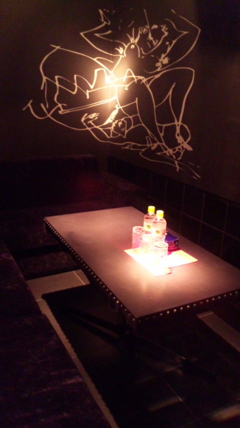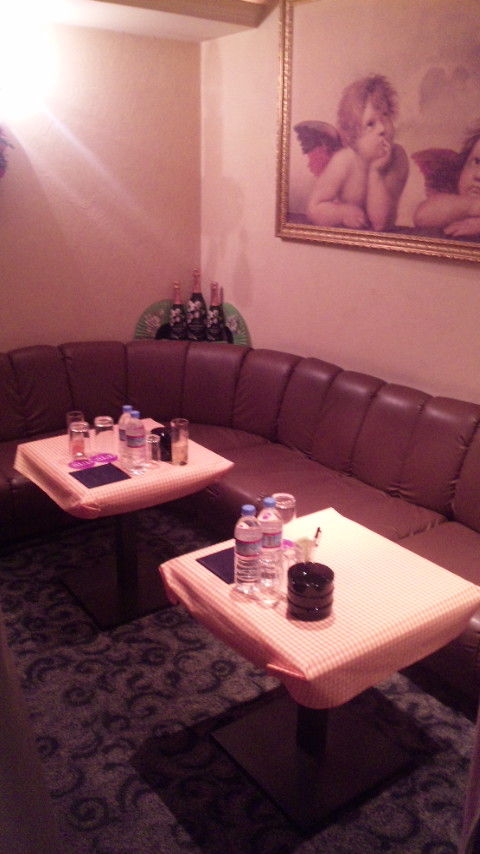 系列店のアットヴァージンがAV女優だけが働いているので、こちらもそうなのかな?と思い聞いてみると、キューティーではAV女優もいるそうですが、普通の子も働いているとのこと。すぐ横で出勤してきた女性が待機していたので見てみると、たしかにAV嬢っぽくない普通の子もいて、みんなメイドの衣装を着ていました。服装に関して聞いてみると、通常はメイドの衣装を着て接客するようですが、5月からは水曜日と土曜日だけはミニドレス着用になるということです。イチャキャバと言っても普通に指名料はあって、本指名3000円・場内指名1000円・同伴3000円・ドリンクバック300円から、と手当でも稼げるようになっています。打ち合わせが終わり、最後にVIPルームを見せていただきました。2枚目の写メはそのVIPルームを撮ったものになります。カーテンで仕切られたこの部屋は、2つテーブルがあり、1組がゆったり使用できる作りになっていましたね。お店には、このVIPルームとメインルームだけで、1日の出勤人数は15名程度になります。