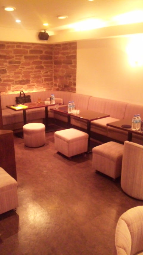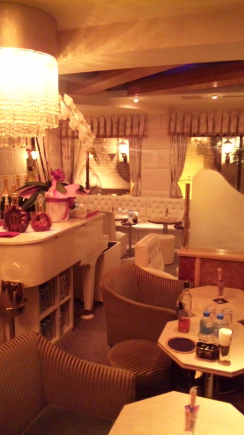 1枚目の写メは、私たちが打ち合わせをしたラソのメインルームを撮ったものになります。真ん中にはグランドピアノが置かれており、その周りを囲むようにテーブルが配置されています。全体的に薄いグレーで統一された店内は落ち着いた印象で、客層の良いラソにはぴったりな感じがしましたね。営業中にはピアニストが生演奏をしてくれるそうで、30分弾いて30分休憩を1ラウンドとして3ラウンドも生演奏があります。すてきなBGMのなかで接客すると会話も弾みそうですよね。