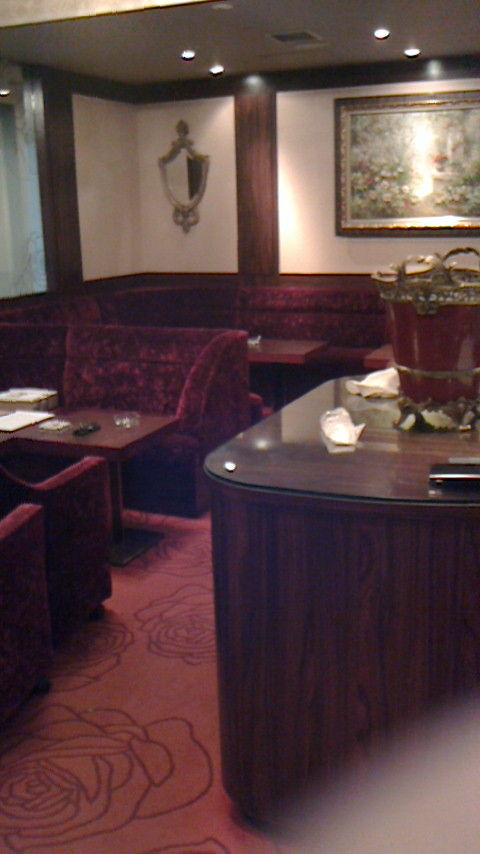 お店に着くと今日はメインルームに通されて面接がはじまりました。来週オープンということもあり、メインルームのテーブルの上には、お酒やDMや段ボールなどが大量に積み上げられていたので、きれいな箇所を撮ろうと思ったらこのアングルになってしまいました。オスカーグループのお店と言えば、ゴージャスな内装が特徴ですが、クロリスはクラブらしい大人な女性がマッチする落ち着いた内装になっていましたね。